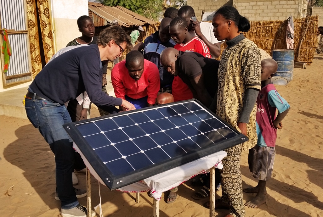 Last month members of the Little Sun Team from our offices in Berlin and Senegal visited the eco-village of Yeuma to test our first community solar mobile phone charger, large enough to serve the needs of an entire village. Located about a three-hour drive from Dakar, Senegal, Yeuma is a village without electricity, but many of its 350 residents have mobile phones.